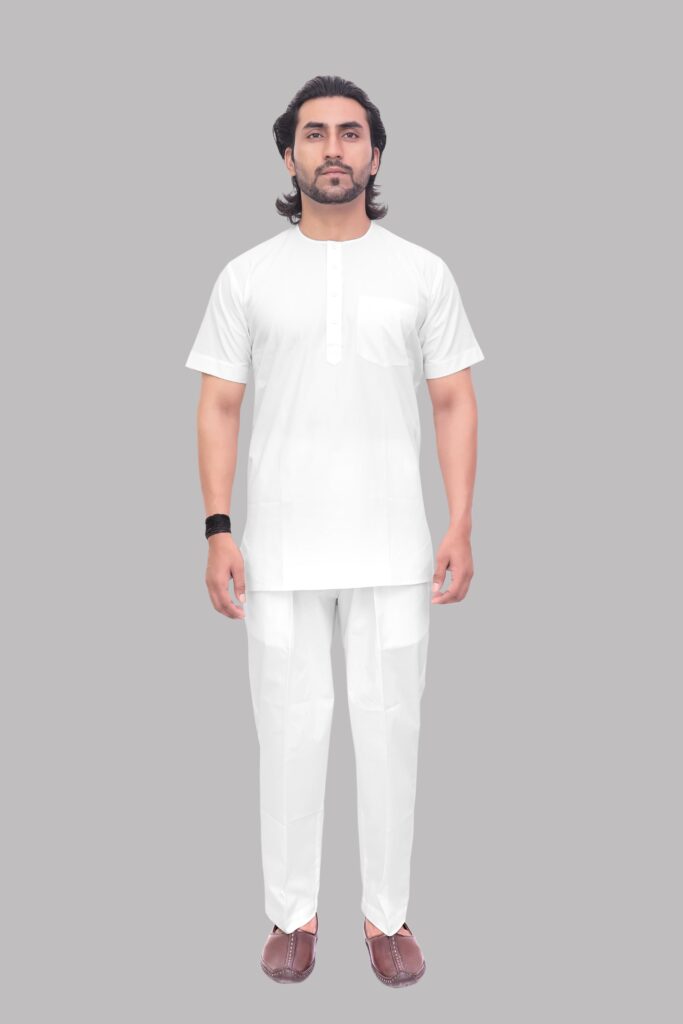 White Half Sleeve Modi Kurta for Men – Casual Cotton Kurta for Daily Wear & Pooja