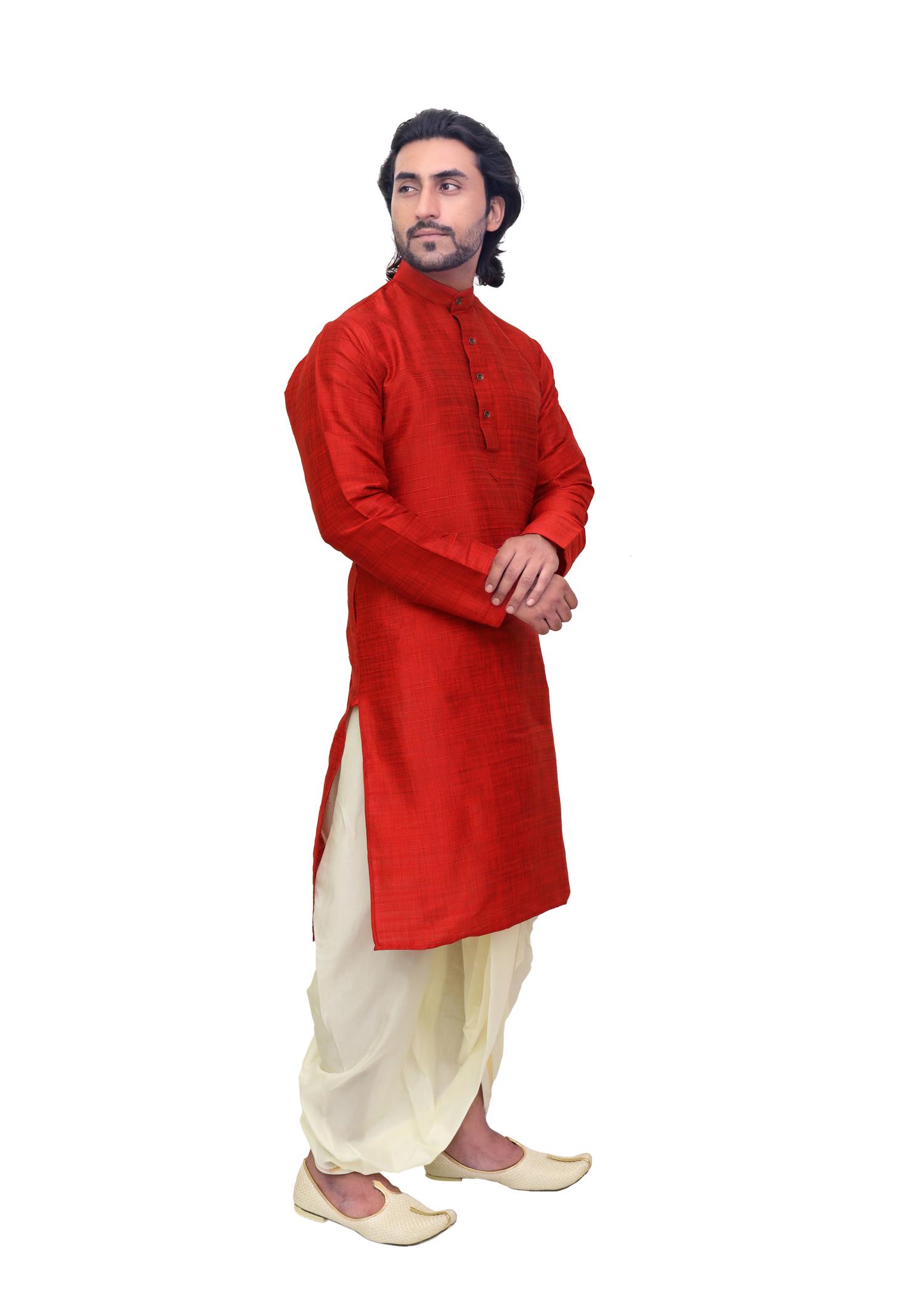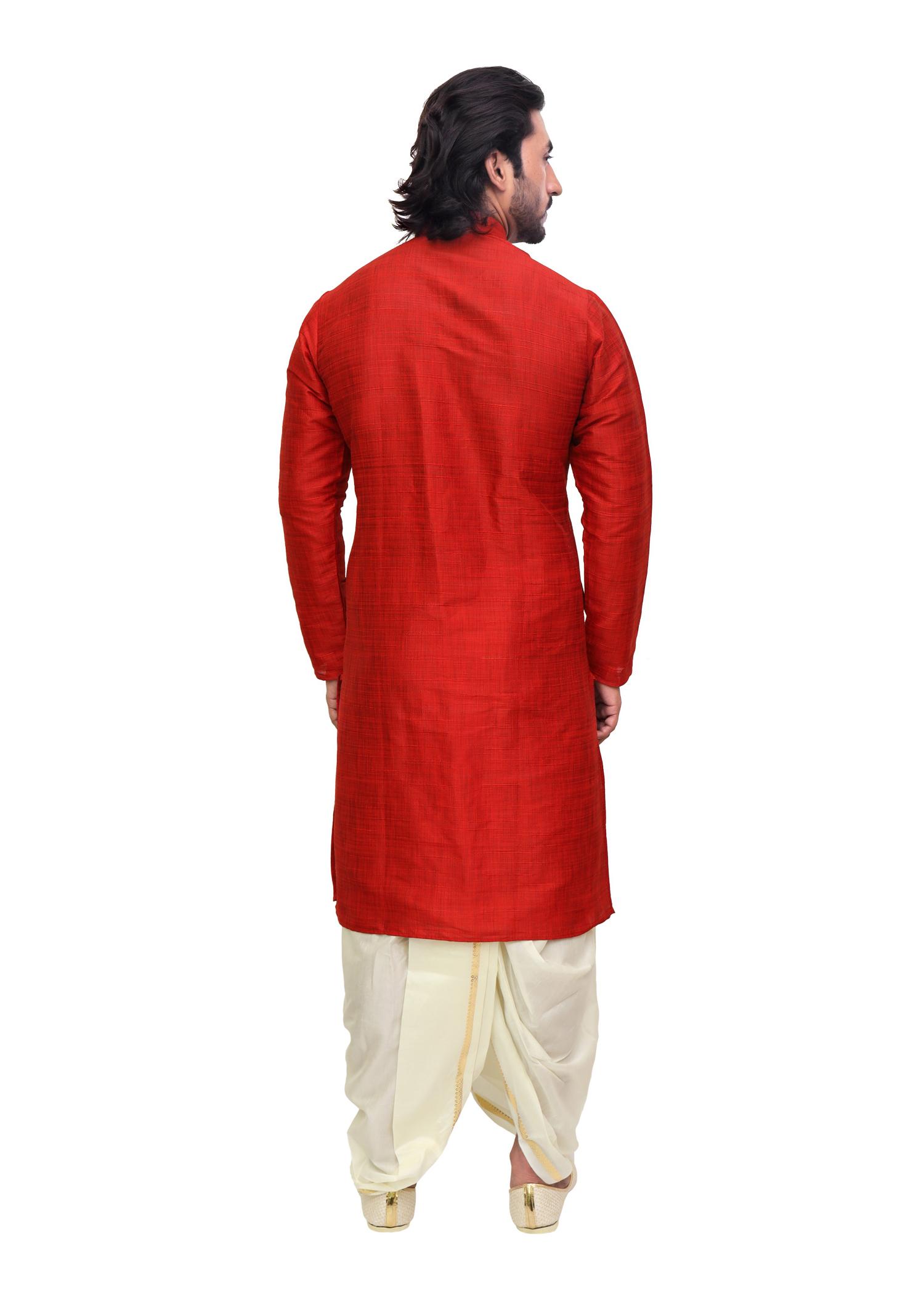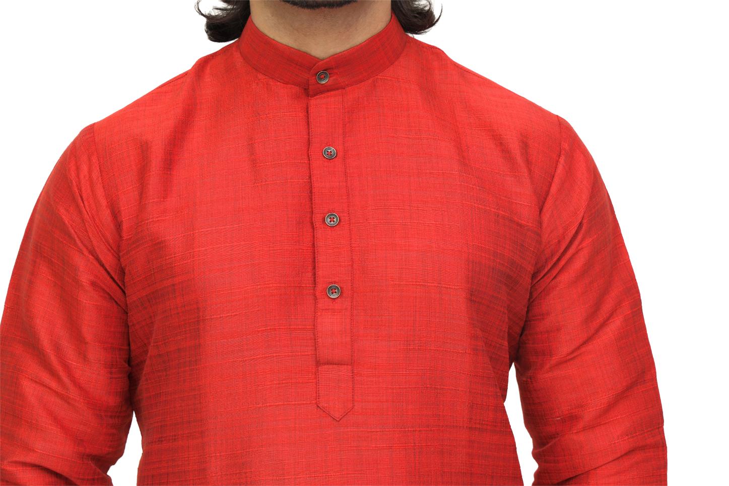 Add a touch of royalty to your ethnic wardrobe with Patwa’s Red Silk Kurta for Men. Crafted from rich silk fabric, this kurta offers timeless elegance and a luxurious feel, perfect for weddings, poojas, and festive occasions.