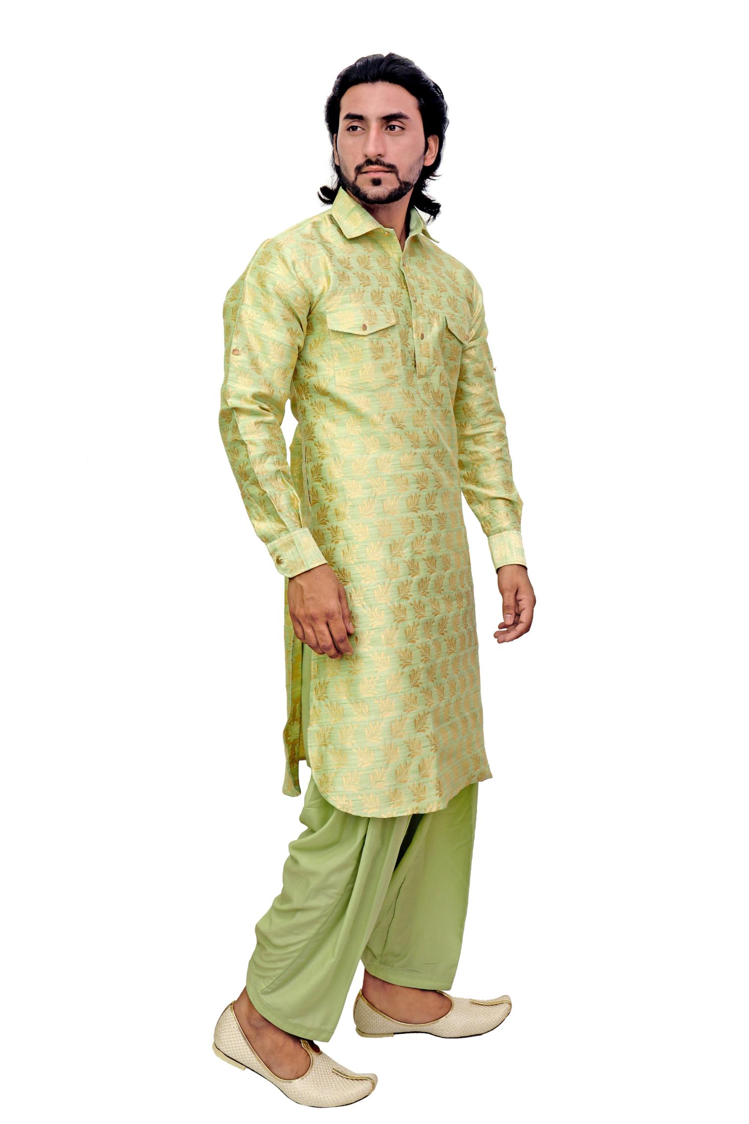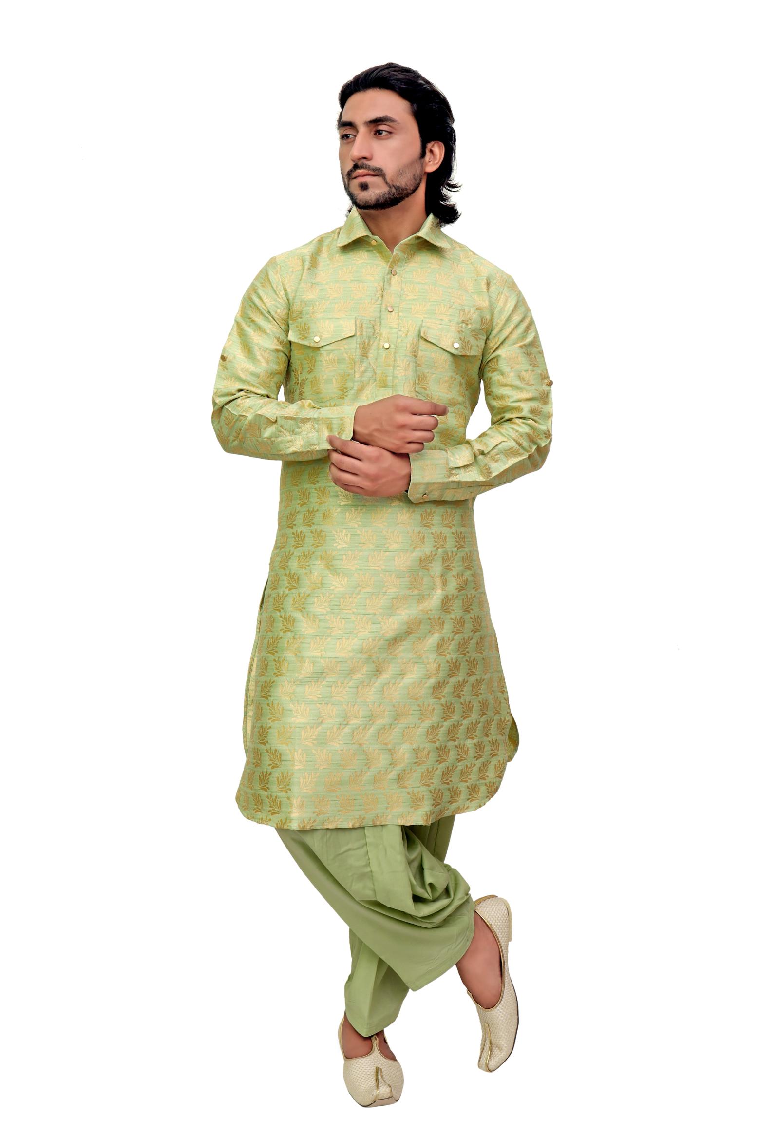 Men’s Silk Pathani Suit with Salwar Bottom – Elegant Ethnic Set