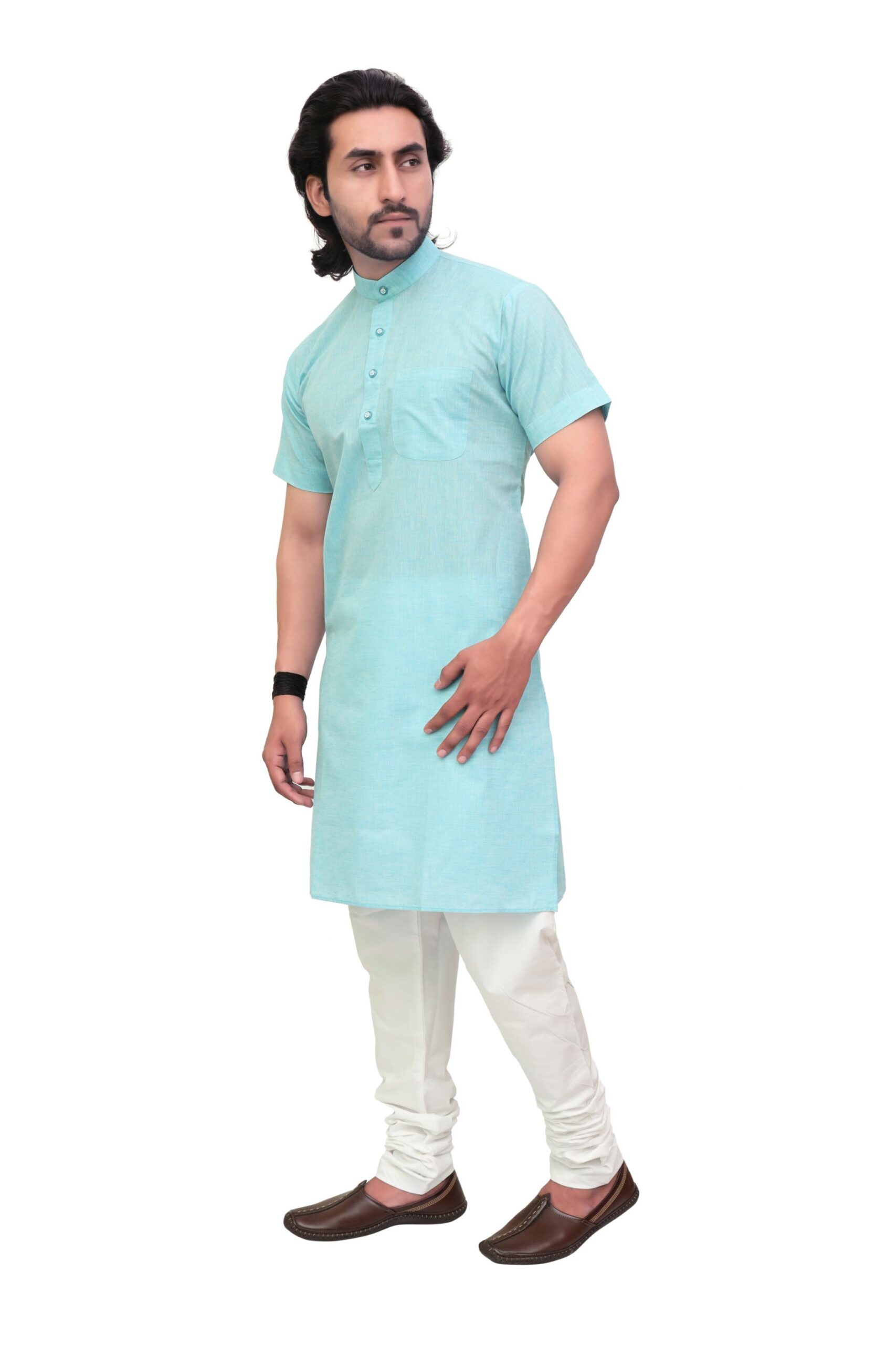 - Design: Modi-style mandarin collar with front placket and full sleeves