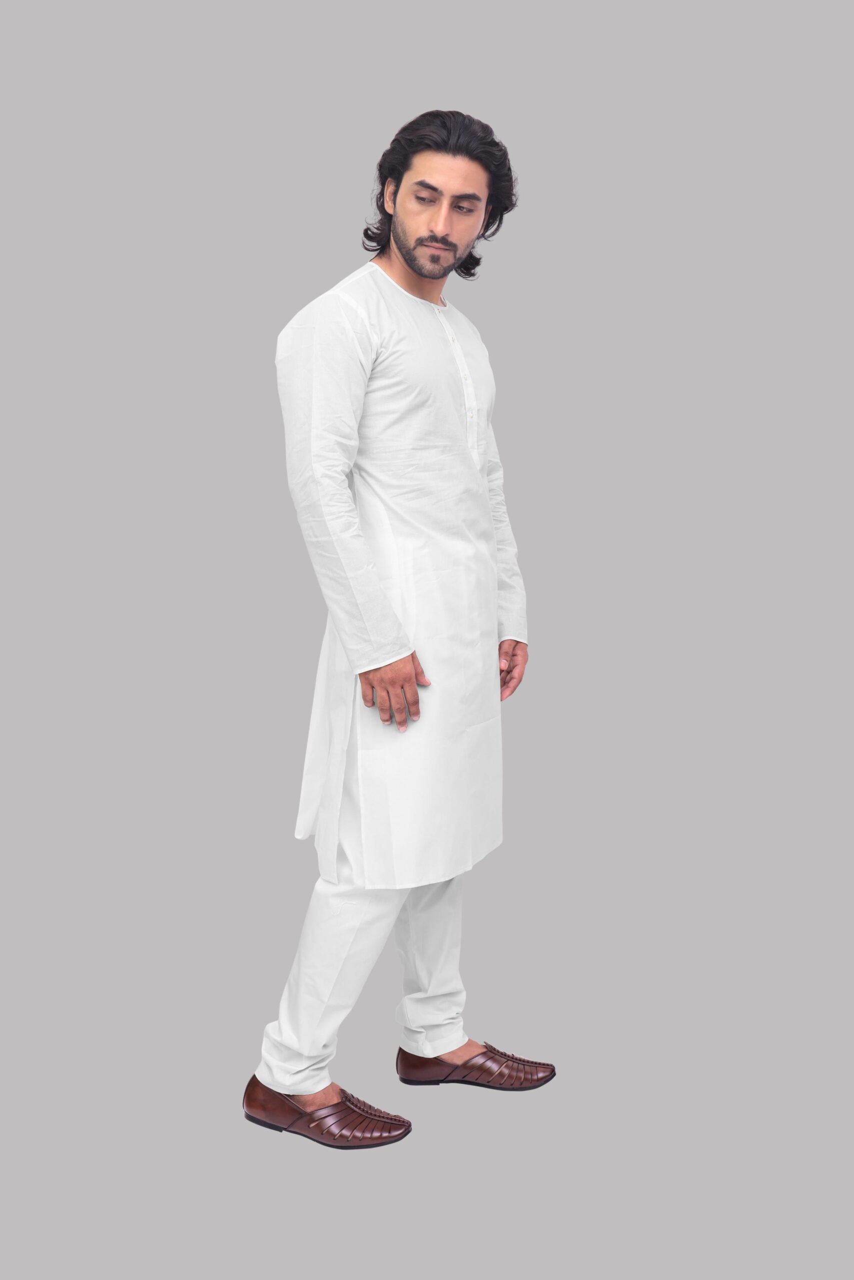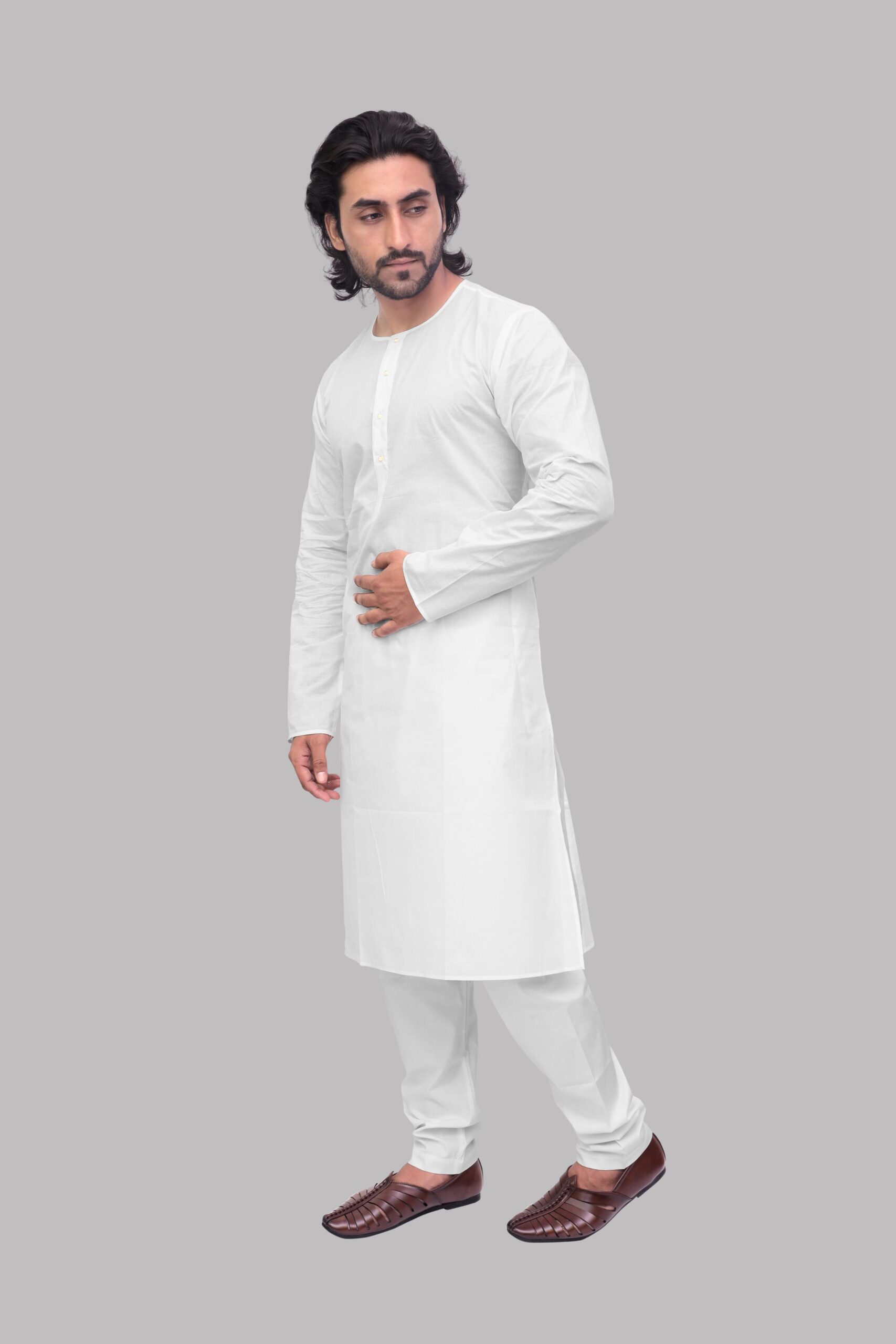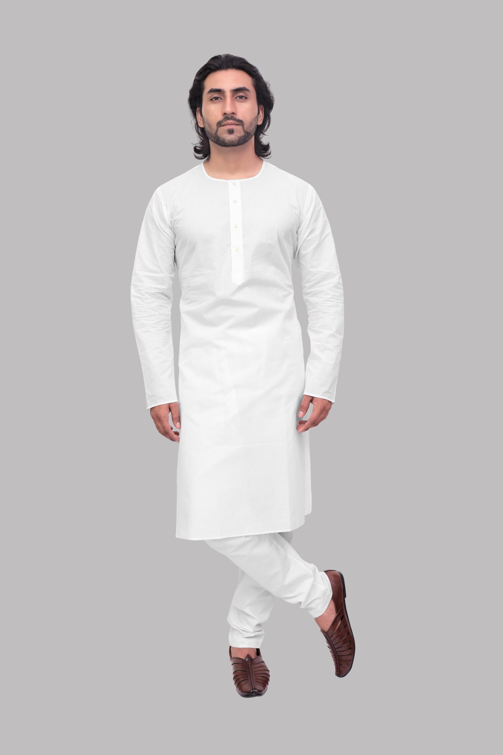 White Round Neck Liane Cotton Kurta for Men – Elegant Daily & Festive Wear