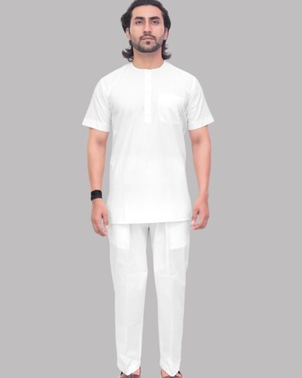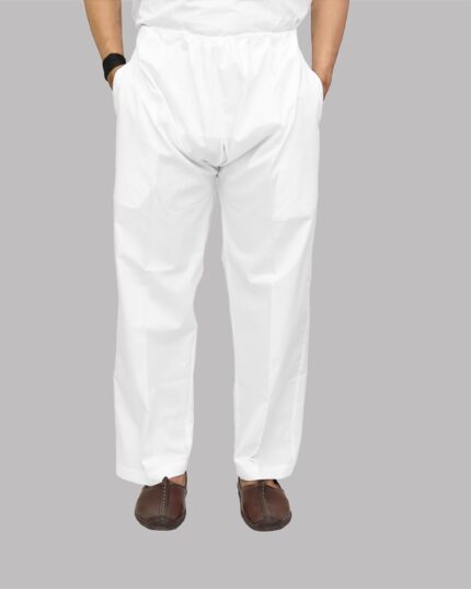 Loose Fit Cotton Pyjama for Men – White Straight Cut with Big Mori and Side Pockets