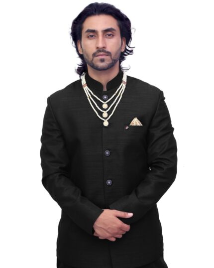 Black Jodhpuri Coat for Men with Bottom Fabric – Stitched Jacket + Unstitched Pant